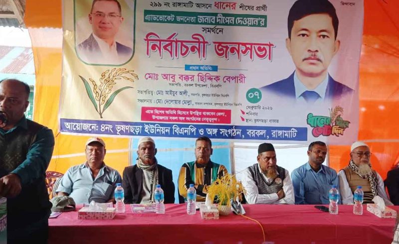 রাঙামাটির ২৯৯ নং সংসদীয় আসনে বিএনপি মনোনীত ধানের শীষ প্রতীকের প্রার্থীর সমর্থনে বরকল উপজেলার ভুষনছড়া বাজারে সমাবেশ ও গণমিছিল অনুষ্ঠিত হয়েছে।