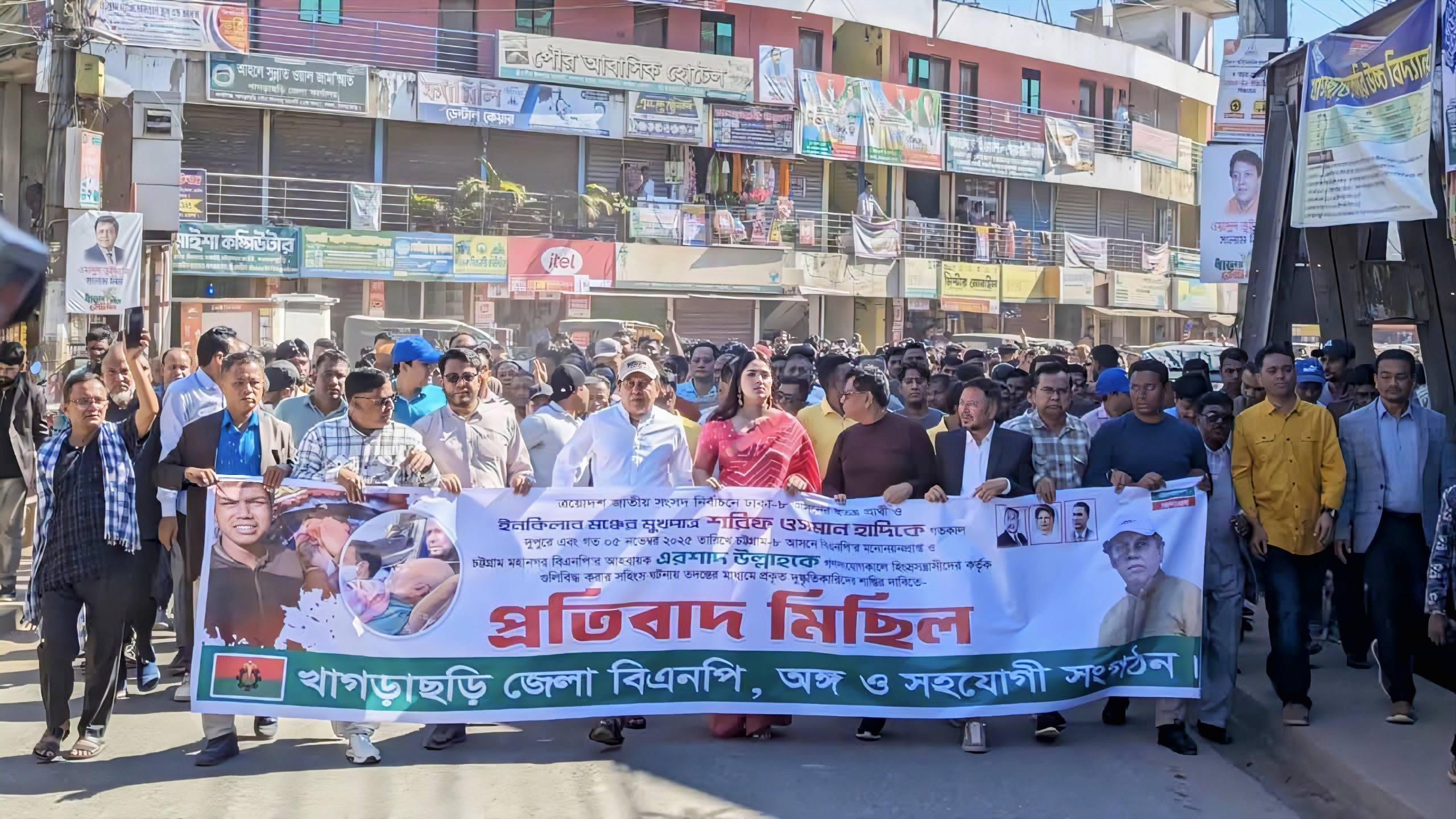 ইনকিলাব মঞ্চের মুখপাত্র ও ঢাকা-৮ আসনের স্বতন্ত্র প্রার্থী শরিফ ওসমান হাদি এবং চট্টগ্রাম-৮ আসনের বিএনপি মনোনীত প্রার্থী ও চট্টগ্রাম মহানগর বিএনপির আহ্বায়ক এরশাদ উল্লাহকে গণসংযোগ চলাকালে গুলি করে হত্যার চেষ্টার ঘটনায় তীব্র প্রতিবাদ জানিয়েছে খাগড়াছড়ি জেলা বিএনপি।