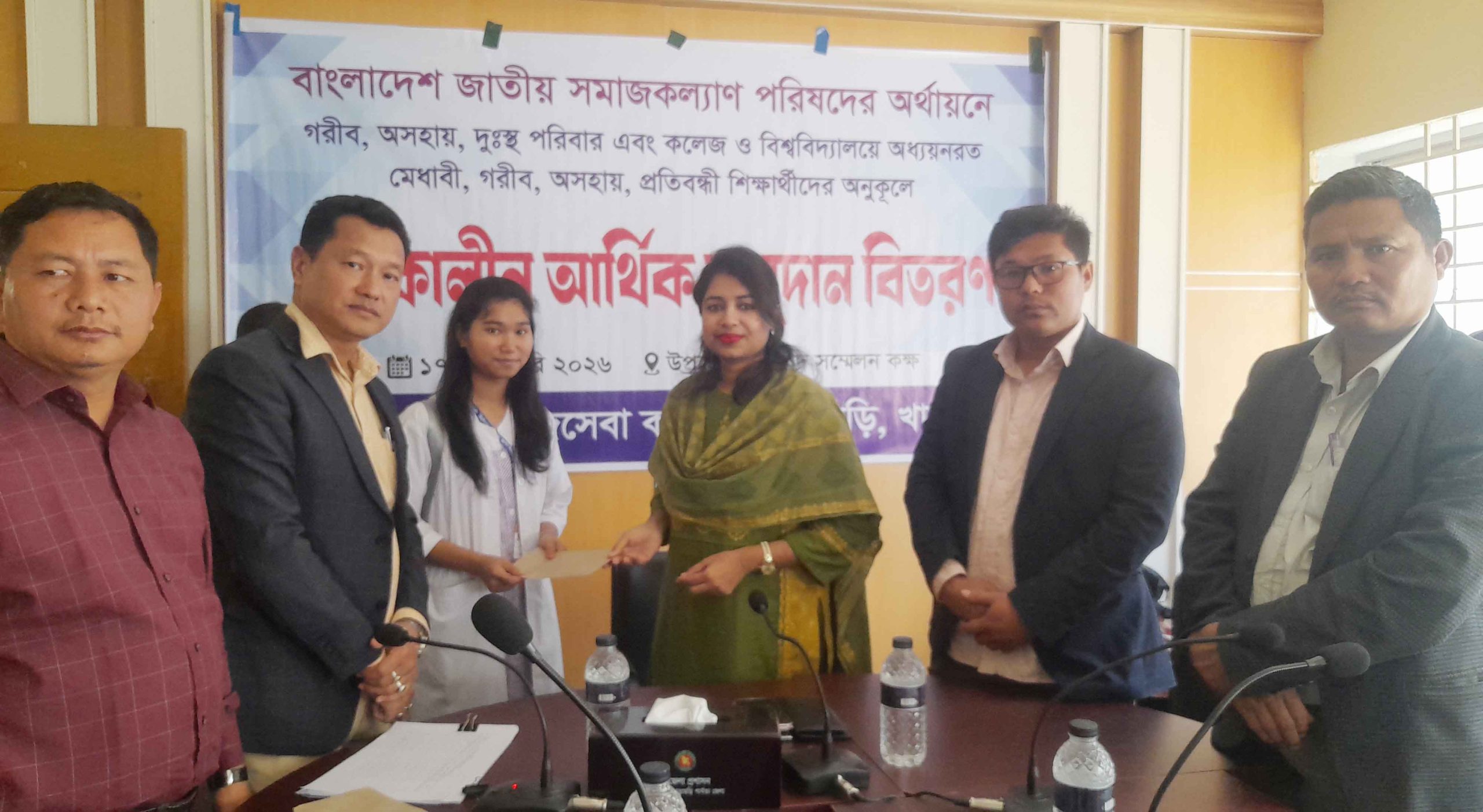 বাংলাদেশ জাতীয় সমাজকল্যাণ পরিষদের অর্থায়নে গরীব, অসহায় ও দুঃস্থ পরিবার এবং কলেজ ও বিশ্ববিদ্যালয়ে অধ্যয়নরত মেধাবী, গরীব, অসহায় ও প্রতিবন্ধী শিক্ষার্থীদের মাঝে মঙ্গলবার (১৭ ফেব্রুয়ারি ২০২৬), পানছড়ি উপজেলা পরিষদ সম্মেলন কক্ষে এককালীন আর্থিক অনুদান বিতরণ করা হয়েছে।