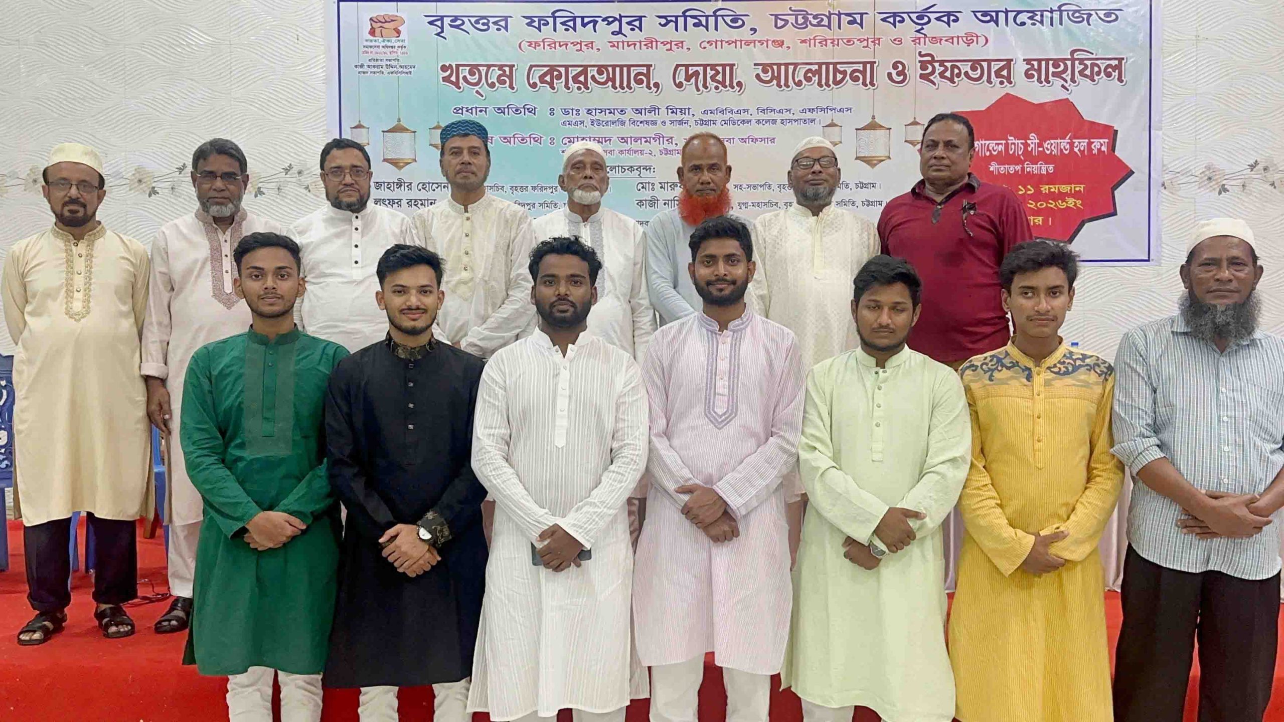 চট্টগ্রামে বৃহত্তর ফরিদপুর সমিতির উদ্যোগে পবিত্র মাহে রমজান উপলক্ষে খতমে কোরআন, দোয়া ও ইফতার মাহফিল অনুষ্ঠিত হয়েছে। রবিবার (১ মার্চ), ১১ রমজান, নগরীর আগ্রাবাদ গোল্ডেন টার্চ হলরুমে এ আয়োজন করা হয়।