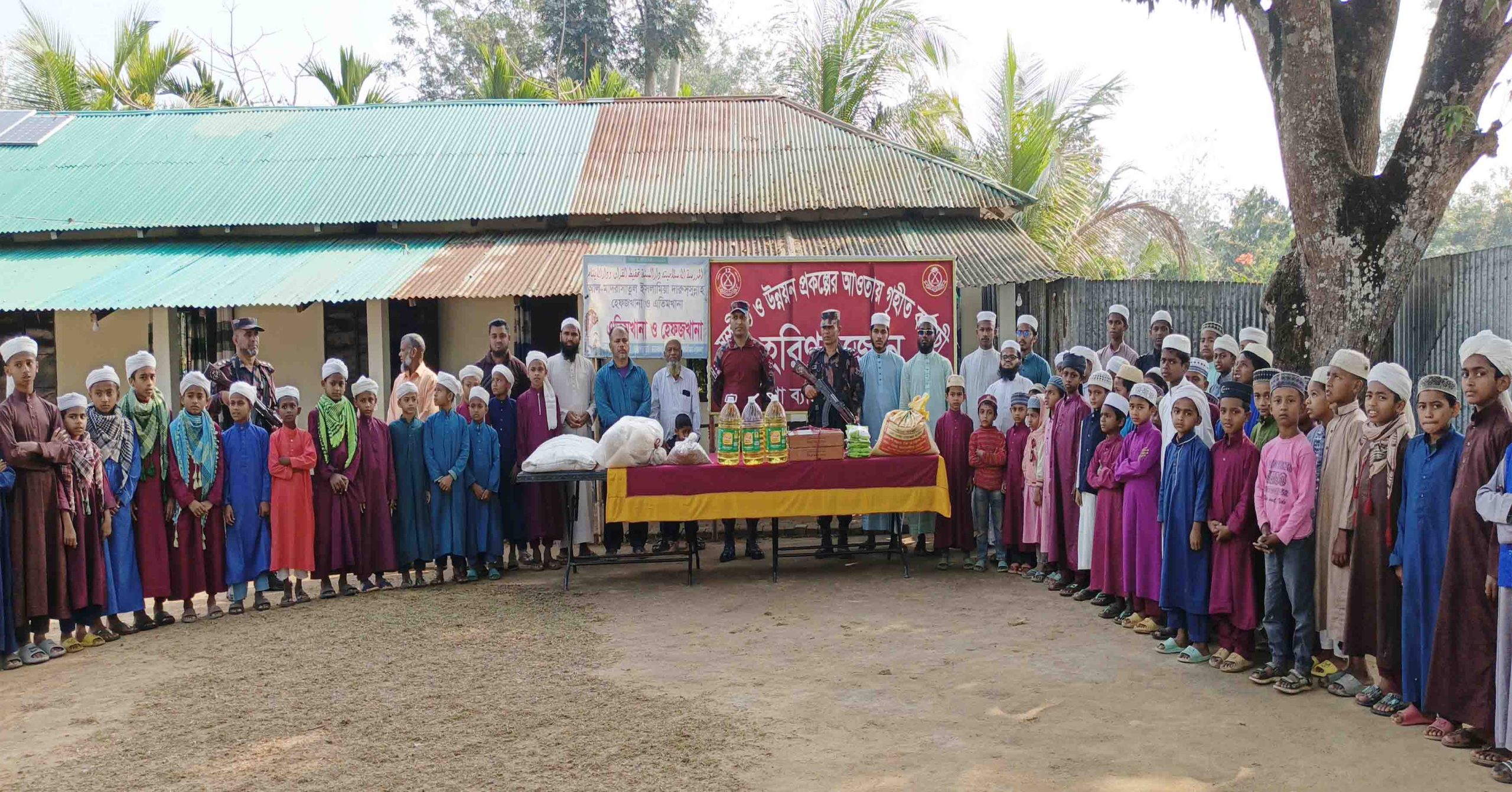 বুধবার (৪মার্চ ২০২৬) সকালে বরকল উপজেলার ভুষনছড়া এলাকায় অবস্থিত আল মাদ্রাসাতুল ইসলামিয়া দারুস সুন্নাহ হেফজখানা ও এতিমখানার মাঠে এই সহায়তা কার্যক্রম অনুষ্ঠিত হয়। ছোটহরিণা ব্যাটালিয়ন (১২ বিজিবি) জোনের ‘সম্প্রীতি ও উন্নয়ন প্রকল্প’-এর আওতায় আয়োজিত এ কর্মসূচিতে অসহায় শিক্ষার্থীদের মাঝে চাল ৫০ কেজি, তেল ২০ কেজি, খেজুর ১০ কেজি, চিনি ৫ কেজি, ছোলা ৫ কেজি, মুড়ি ৫ কেজিসহ বিভিন্ন খাদ্যসামগ্রী ও ইফতার সামগ্রী বিতরণ করা হয়। পাশাপাশি প্রতিষ্ঠানটির জন্য ১৫ হাজার টাকা আর্থিক অনুদান প্রদান করা হয়।