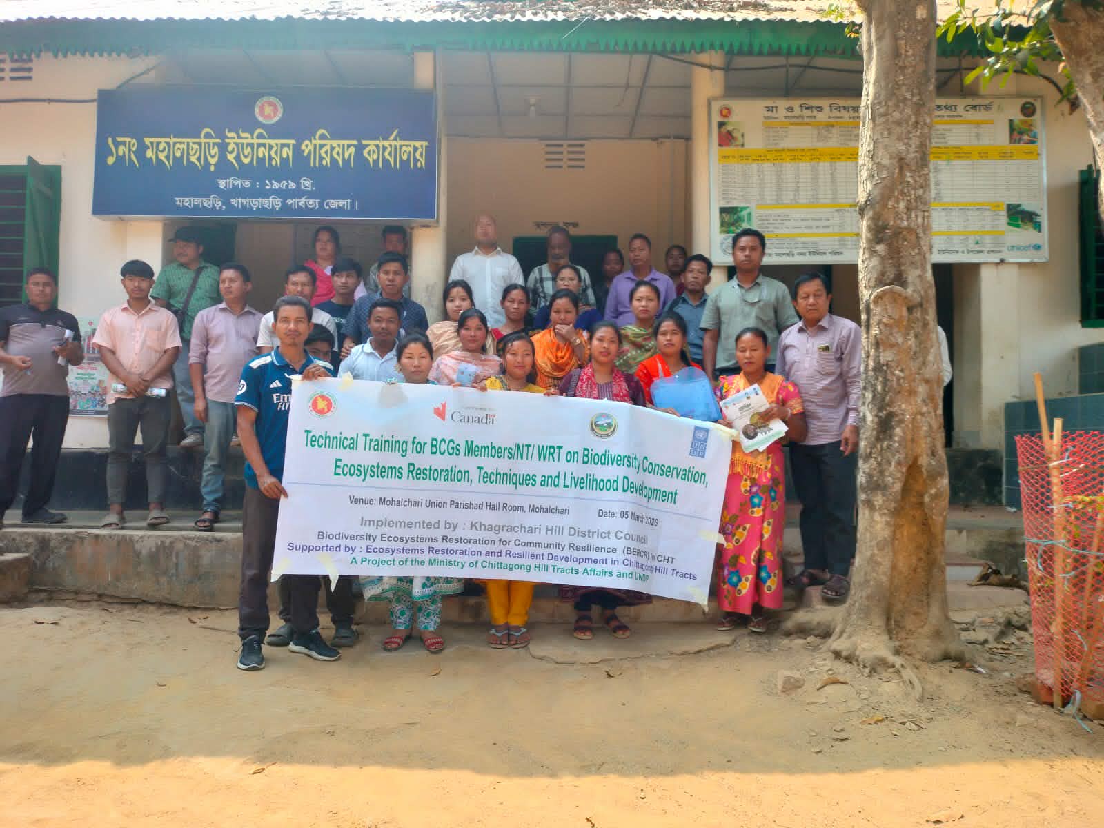 জাতিসংঘ উন্নয়ন কর্মসূচি (ইউএনডিপি)-এর কারিগরি সহায়তায় খাগড়াছড়ি পার্বত্য জেলা পরিষদ কর্তৃক বাস্তবায়িত “Biodiversity Ecosystem Restoration for Community Resilience in CHT” প্রকল্পের আওতায় মহালছড়ি উপজেলার বিভিন্ন ইউনিয়নের উপকারভোগীদের নিয়ে এ প্রশিক্ষণের আয়োজন করা হয়। প্রশিক্ষণের মূল লক্ষ্য ছিল পাহাড়ি অঞ্চলের জীববৈচিত্র্য সংরক্ষণ, পরিবেশবান্ধব কৃষি চর্চা এবং টেকসই প্রাকৃতিক সম্পদ ব্যবস্থাপনা সম্পর্কে উপকারভোগীদের জ্ঞান ও দক্ষতা বৃদ্ধি করা।