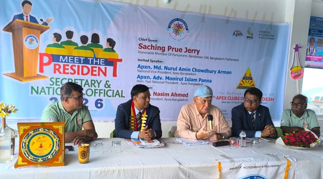 মঙ্গলবার (১৪এপ্রিল) দুপুর ১টায় বান্দরবান নীলাম্বরী রিসোর্টে আয়োজিত অনুষ্ঠানে প্রধান অতিথির বক্তব্যে তিনি এসব কথা বলেন। আন্তর্জাতিক সেবা মূলক সংস্থা এপেক্স বাংলাদেশ এর মিট দ্যা প্রেসিডেন্ট, সেক্রেটারি এন্ড ন্যাশনাল অফিসিয়াল কনফারেন্স ২০২৬ অনুষ্ঠিত হয়েছে। এর আগে সকাল ৮টায় এপেক্স বাংলাদেশ এর উদ্যোগে বান্দরবান জেলা প্রশাসক প্রাঙ্গন হতে বৈশাখী শোভাযাত্রা শুরু হয়। দিন ব্যাপি এ অনুষ্ঠানে এপেক্স বাংলাদেশ এর জাতীয় নেতৃবৃন্দ ও সকল ক্লাব প্রেসিডেন্ট সেক্রেটারি অংশ গ্রহন করেন। সকাল ১১টা থেকে শুরু হয়ে দুপুর পর্যন্ত মিট দ্যা প্রেসিডেন্ট, সেক্রেটারি এন্ড ন্যাশনাল কনফারেন্স, বিকেল ৪টায় বর্ষবরণ উৎসব ও সাংস্কৃতিক অনুষ্ঠান, বিকেল ৫টায় ফানুস উত্তোলনের মধ্য দিয়ে অনুষ্ঠানের সমাপ্তি করা হয়।