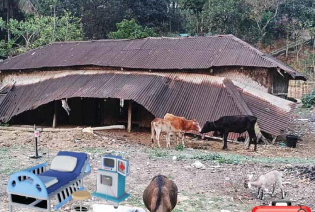 পার্বত্য জেলার বান্দরবানের লামায় গজালিয়া ইউনিয়নে এমন হাসপাতালও দেশে আছে তাহলে? উন্নয়নে দেশে সয়লাব অবস্থা। স্বাস্থ্যসেবার হাসপাতালের অবস্থাও বেশ উন্নত হচ্ছে দেশে। কিন্তু এই বিধ্বস্ত টিনের ঘরটি দেখে কী বোঝা যায়? এটি পরিত্যক্ত ঘর। মাঠে গরু ঘাস খাচ্ছে দেখে মনে হতে পারে এটি গোয়াল ঘর। কিন্তু বাস্তবে এটি গোয়াল ঘর নয়। মানে গরুর নিবাসস্থল নয়। এটি ছিল মানুষের জন্য স্বাস্থ্যসেবা কেন্দ্র। শুনতে বিস্ময়কর মনে হলেও বাস্তবেই নাকি হাসপাতাল ছিল।