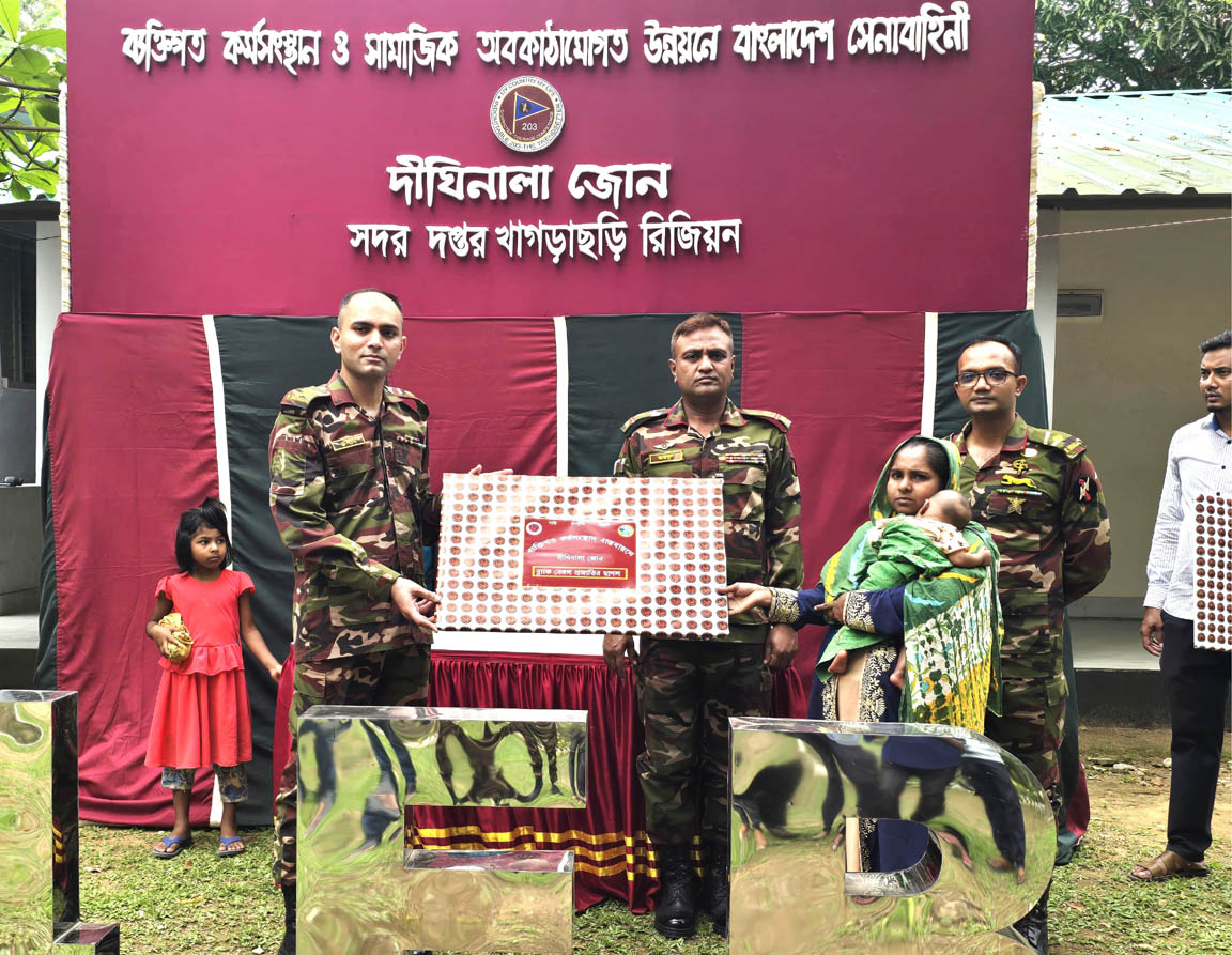 খাগড়াছড়ির দীঘিনালা উপজেলায় বাংলাদেশ সেনাবাহিনীর মানবিক উদ্যোগে অসহায় ও দুস্থ পরিবারের মাঝে স্বাবলম্বী হওয়ার লক্ষ্যে সহায়তা বিতরণ করা হয়েছে। স্থানীয়দের জীবনমান উন্নয়নে এ উদ্যোগকে তাৎপর্যপূর্ণ হিসেবে দেখছেন সংশ্লিষ্টরা।