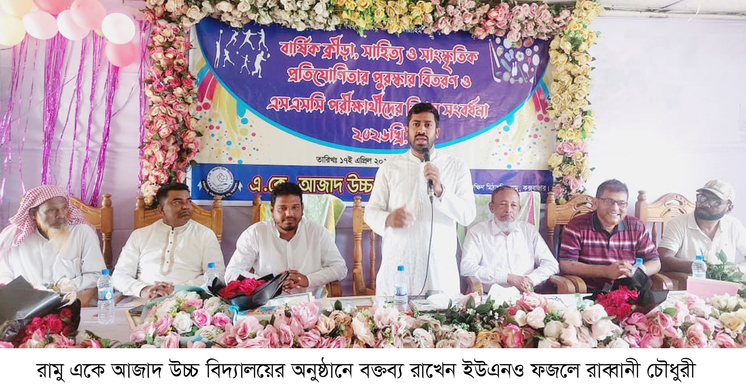 কক্সবাজারের রামু উপজেলার ঐতিহ্যবাহী শিক্ষা প্রতিষ্ঠান এ.কে. আজাদ উচ্চ বিদ্যালয়ে বার্ষিক ক্রীড়া, সাহিত্য ও সাংস্কৃতিক প্রতিযোগিতার পুরস্কার বিতরণ এবং ২০২৬ সালের এসএসসি পরীক্ষার্থীদের বিদায় সংবর্ধনা অনুষ্ঠান অনুষ্ঠিত হয়েছে।