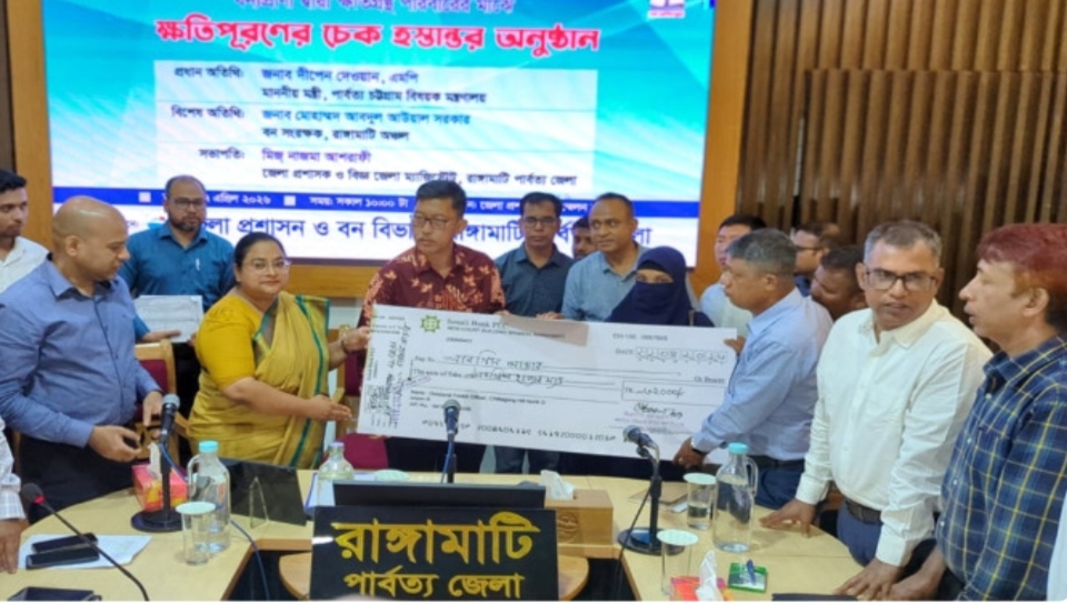 রাঙ্গামাটি জেলা প্রশাসন ও বন বিভাগের আয়োজনে জেলা প্রশাসক সম্মেলন কক্ষে অনুষ্ঠিত চেক হস্তান্তর অনুষ্ঠানে সভাপতিত্ব করেন, জেলা প্রশাসক নাজম আশরাফী। বন বিভাগের পক্ষ থেকে সভায় বক্তব্য রাখেন, রাঙ্গামাটি অঞ্চলের বন সংরক্ষক মোহাম্মদ আবদুল আউয়াল সরকার।