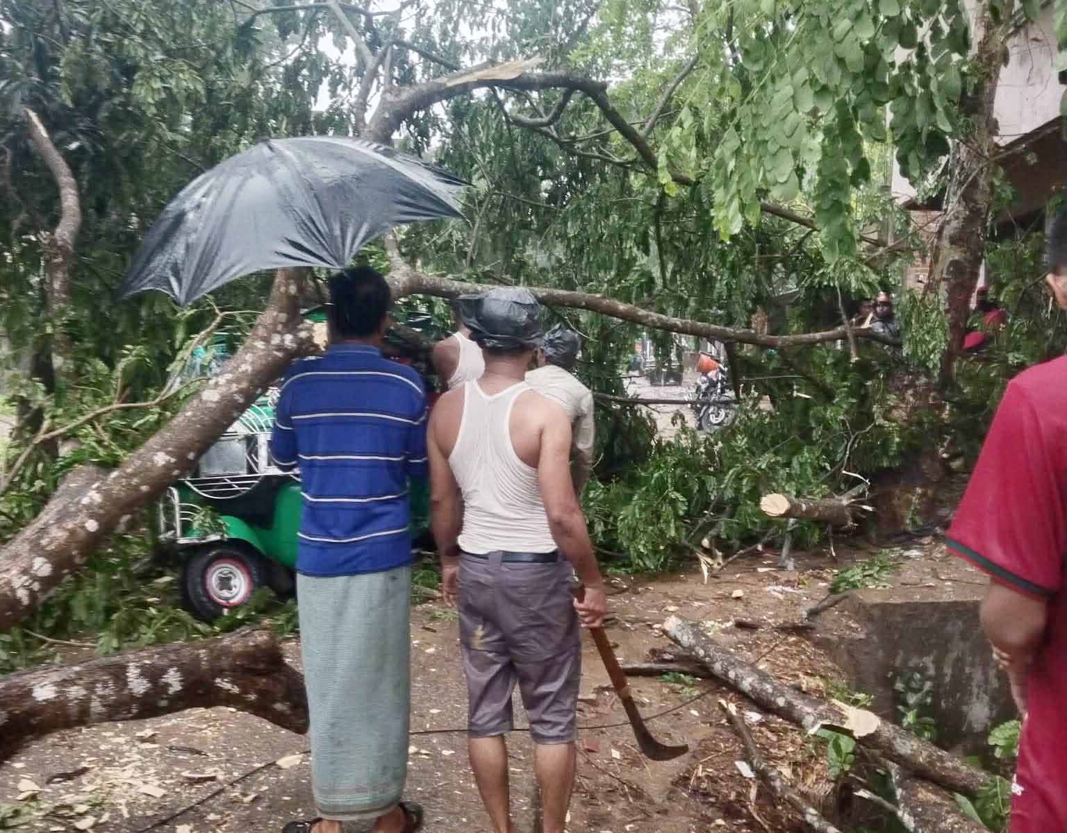 এদিকে একই দিন বিকাল আড়াইটার দিকে নাইক্ষ্যংছড়ি থেকে বাইশারী বাজারগামী একটি চলন্ত সিএনজিচালিত অটোরিকশার ওপর দক্ষিণ বাইশারী এলাকায় মাইক বাদশার বাড়ির সামনে ঝড়ের প্রবল বাতাসে গাছের ডাল ভেঙে পড়ে। এতে যানবাহনটি ক্ষতিগ্রস্ত হয় এবং হাজেরা খাতুন (৪০) নামে এক নারী যাত্রী গুরুতর আহত হন।